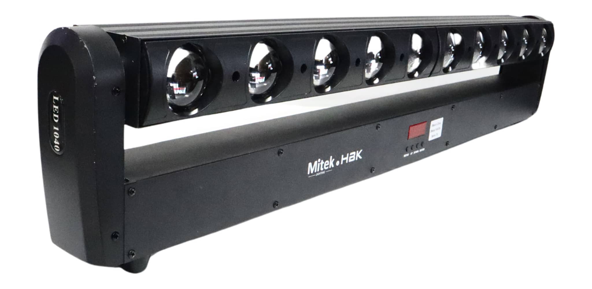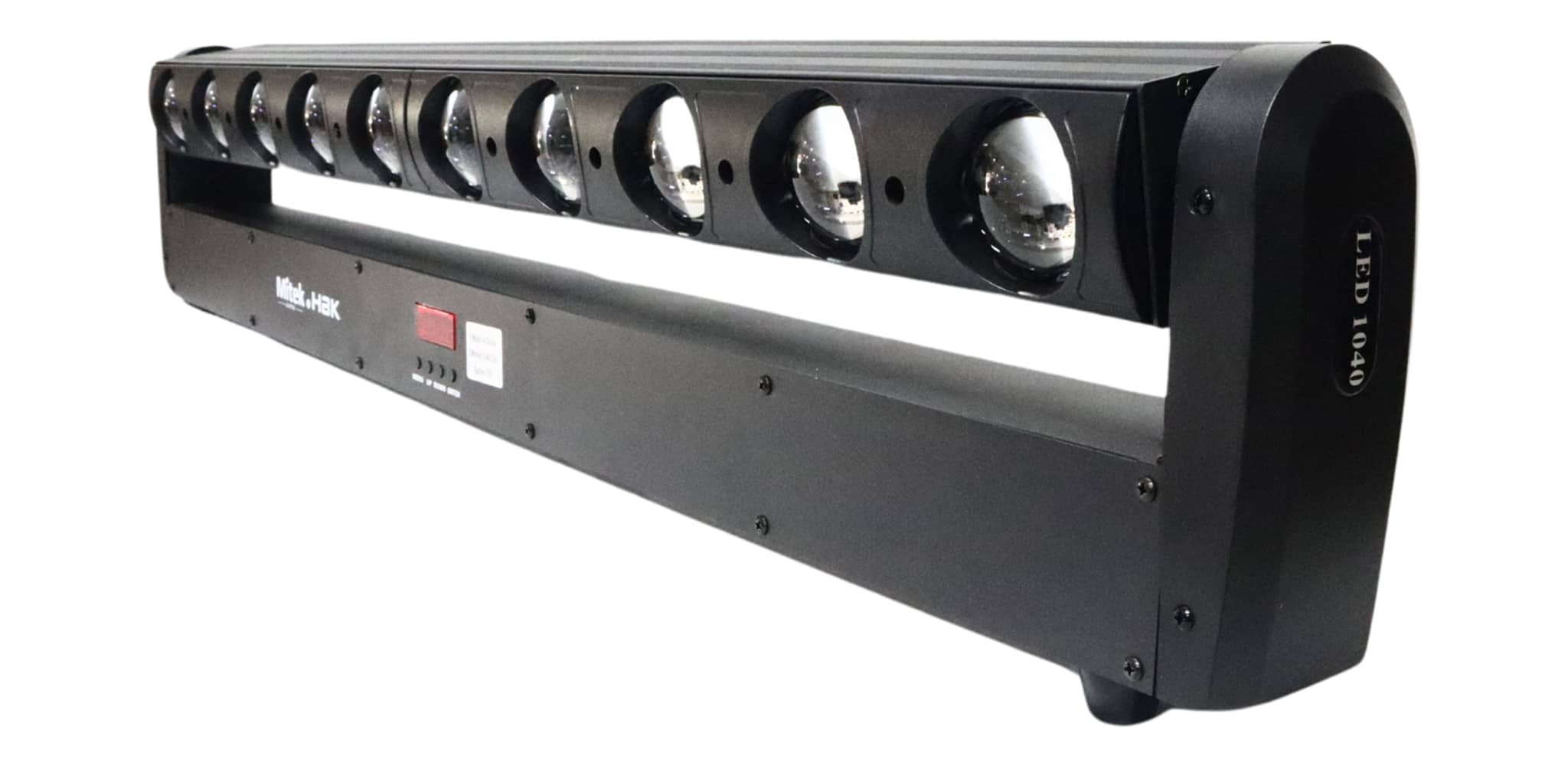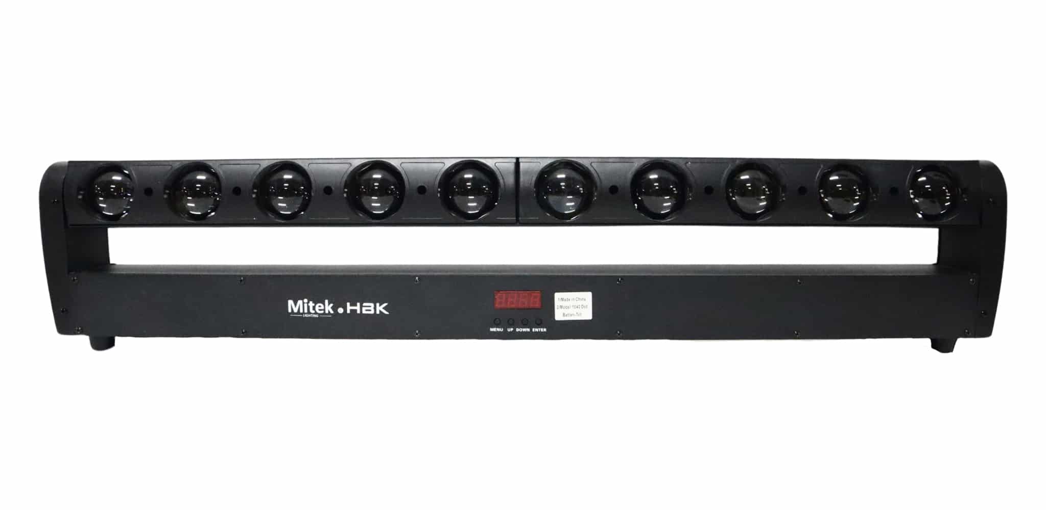 🔧 Mitek & HBK 1040 Dot Batten-Tilt – LED Moving Bar Lights được cấu tạo từ thân nhôm chắc chắn, bên trong tích hợp 10 LED RGBW 4-in-1 công suất lớn, mỗi LED có thể điều khiển độc lập theo pixel.