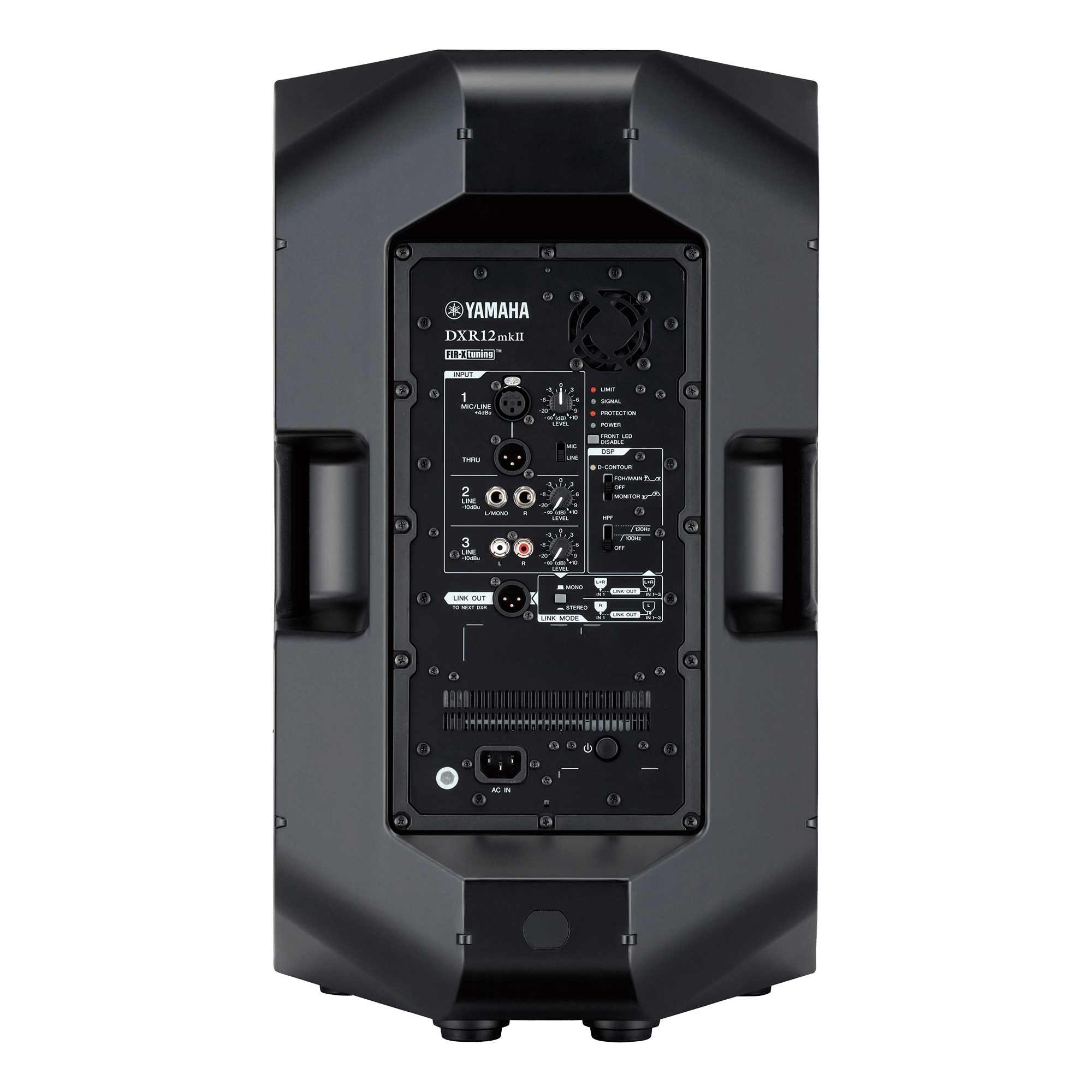 Yamaha DXR12MKII được thiết kế theo cấu trúc loa active 2 đường tiếng với củ bass 12 inch và treble nén công suất cao. Bên trong thùng loa là hệ thống ampli bi-amp tách riêng cho dải trầm và dải cao, giúp mỗi dải hoạt động tối ưu mà không ảnh hưởng lẫn nhau. Bộ xử lý DSP tích hợp chịu trách nhiệm cân chỉnh tần số, bảo vệ quá tải, giới hạn tín hiệu và tối ưu pha âm thanh. Người dùng chỉ cần cấp nguồn và tín hiệu vào là có thể vận hành ngay, không cần ampli rời, giúp hệ thống gọn nhẹ và hiệu quả hơn trong thực tế.