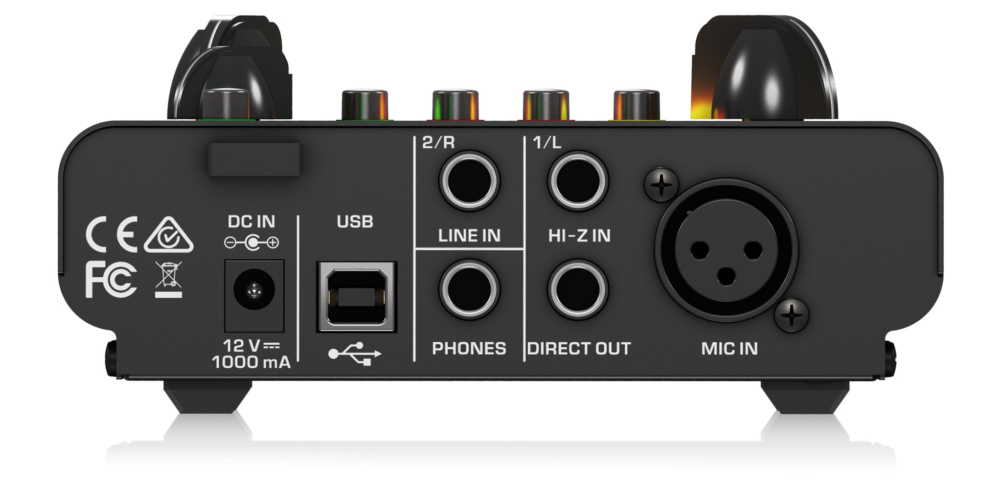 7️⃣ Kết nối đầu vào: XLR mic, TRS hi-Z, TRS line in – Linh hoạt với nhiều loại nguồn tín hiệu từ mic, nhạc cụ tới thiết bị dòng.