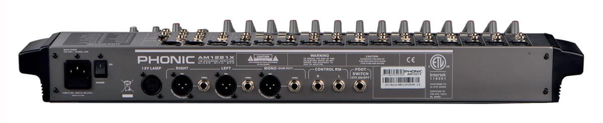 Mixer Analog Phonic AM1221X phù hợp cho người dùng cần một bàn trộn âm thanh analog có khả năng xử lý micro tốt, giảm nguy cơ hú rít nhờ lọc cắt thấp (low cut) trên kênh mono và cho phép tinh chỉnh dải trung có thể quét tần, giúp giọng hát nổi hơn mà vẫn giữ độ tự nhiên