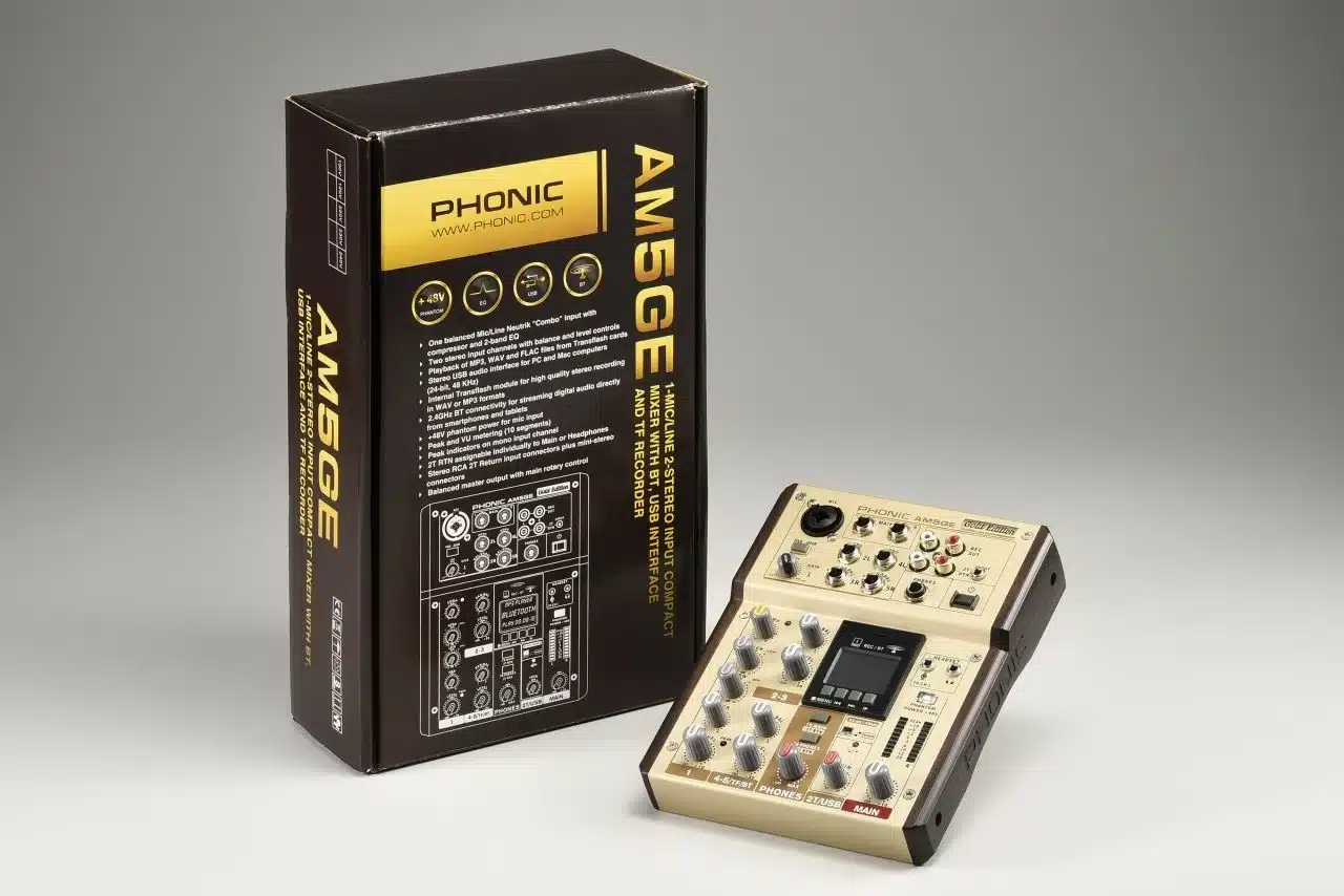 MIXER ANALOG PHONIC AM5GE là dòng mixer analog mini đa năng hướng tới nhu cầu thu âm giọng nói, livestream, podcast, giảng dạy online, biểu diễn acoustic nhỏ và setup phòng thu cá nhân cần thiết bị gọn nhẹ nhưng vẫn đủ kênh, đủ kết nối và kiểm soát âm thanh chuyên nghiệp