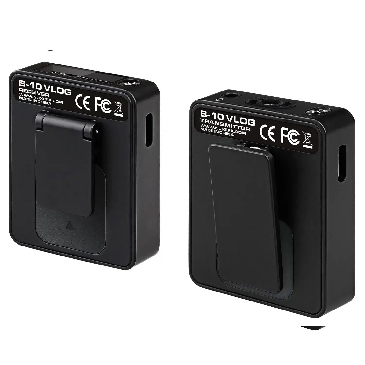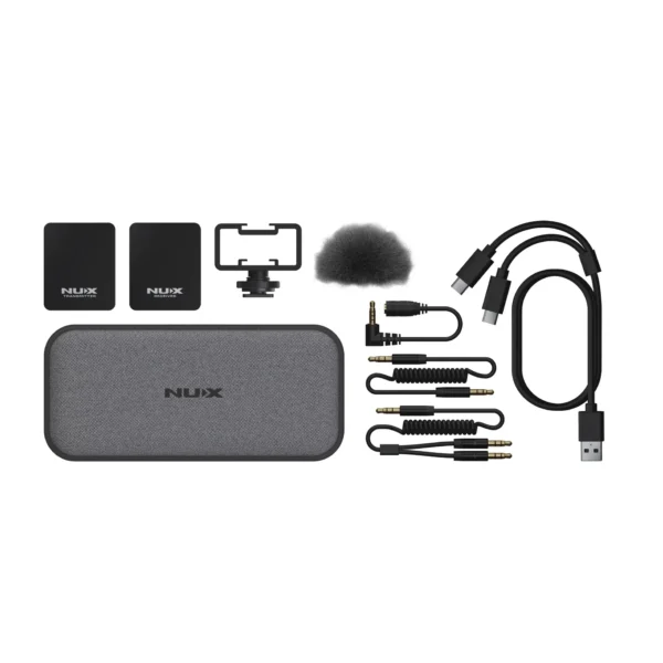 Nux B-10 Vlog gồm một bộ phát (TX) tích hợp micro condenser đa hướng và một bộ thu (RX) nhận tín hiệu không dây. Cả hai đều có pin sạc tích hợp và màn hình OLED hiển thị trạng thái hoạt động.