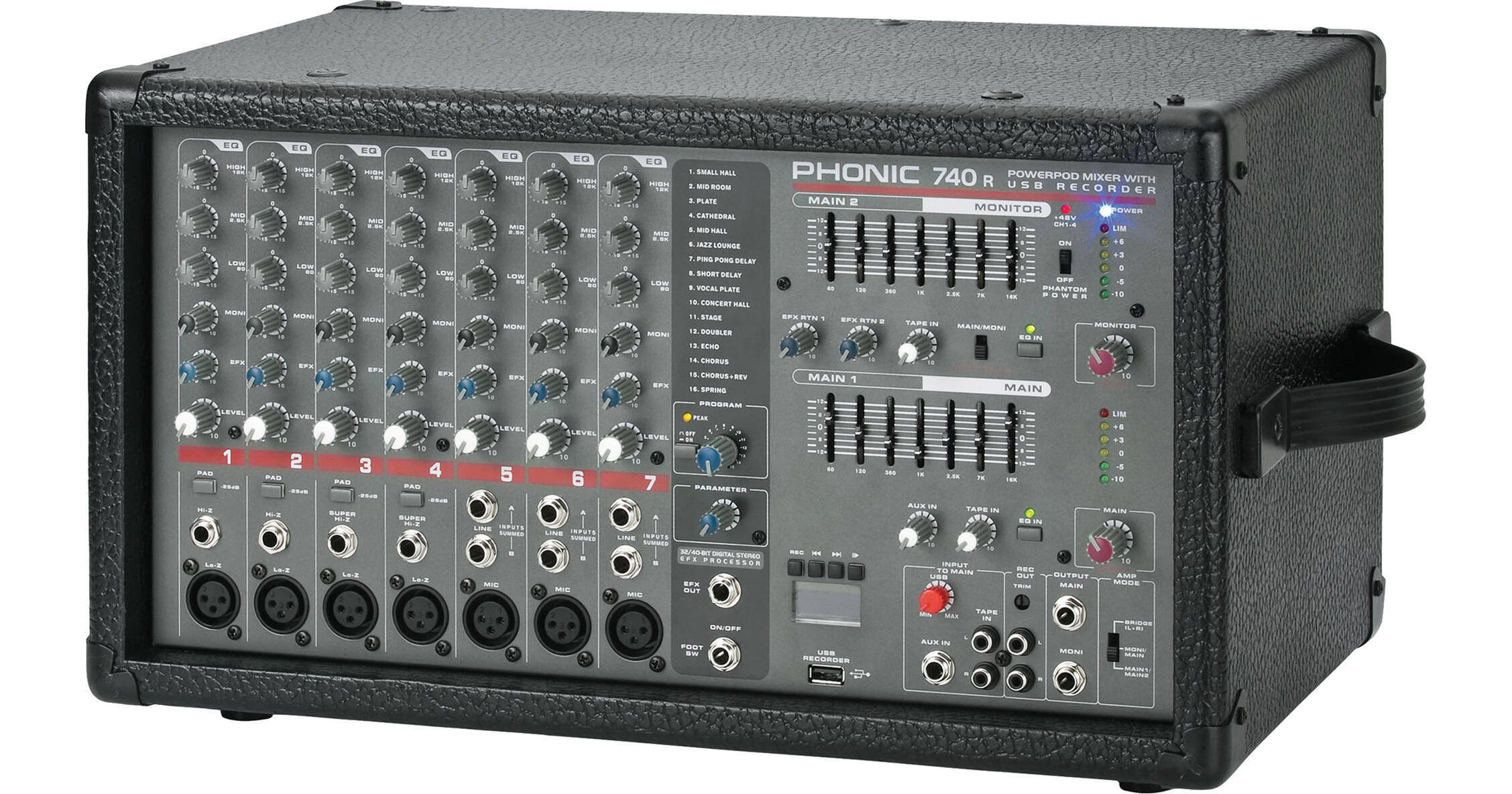 MIXER PHONIC POWERPOD 740R là lựa chọn tối ưu khi bạn cần một mixer liền công suất có hiệu ứng, có khả năng chống hú tốt nhờ EQ đồ họa, có đường monitor riêng cho sân khấu, có tính năng ghi âm và phát nhạc qua USB, đồng thời đáp ứng nhu cầu vận hành linh hoạt cho dàn âm thanh lưu động và các không gian vừa và nhỏ
