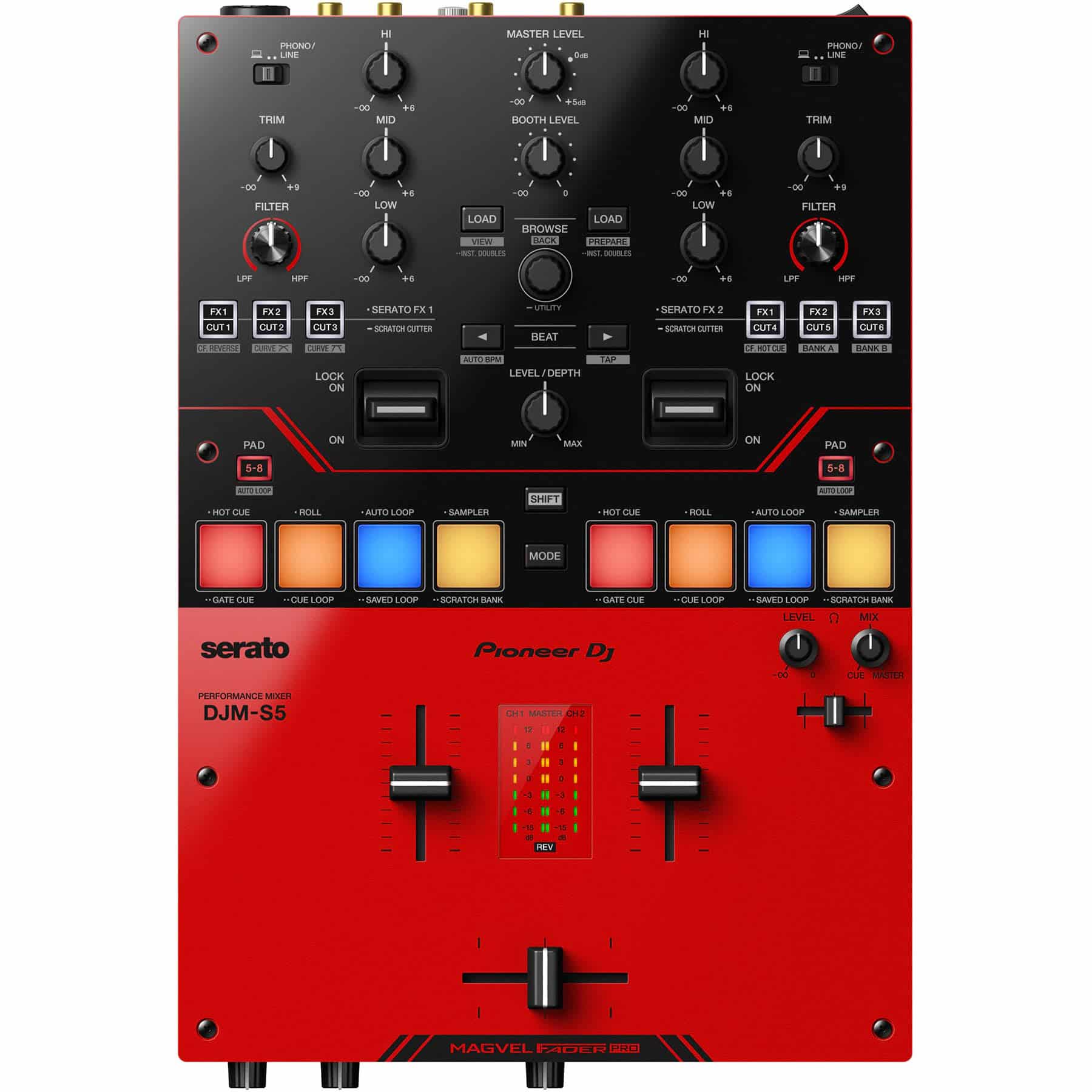 MIXER DJ PIONEER DJ DJM-S5 là dòng mixer scratch 2 kênh dành cho DJ hiện đại, tối ưu cho nhu cầu biểu diễn battle, scratch, hiphop, open format và chơi set linh hoạt trong club, sân khấu nhỏ đến livestream tại nhà