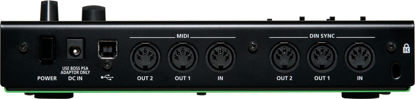 Có DIN Sync IN và 2 DIN Sync OUT, mỗi cổng có thể đặt 24 hoặc 48 để tương thích nhiều máy cổ điển