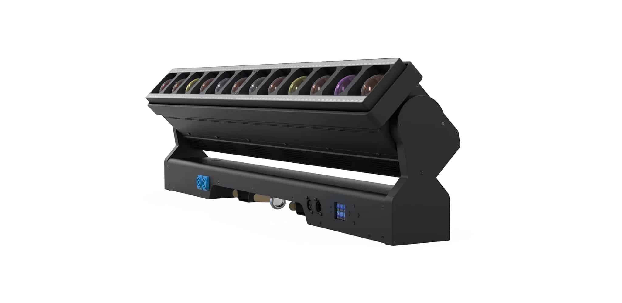 Mitek & HBK Super Dot Line 4012 – LED Moving Bar Lights được thiết kế dạng thanh dài với 12 mắt LED RGBW công suất cao bố trí đều trên thân đèn, cho ánh sáng mạnh và đồng nhất. Phía trước là hệ thống thấu kính zoom giúp thay đổi góc chiếu linh hoạt từ beam hẹp đến wash rộng. Song song đó là dải LED pixel RGB độc lập, cho phép tạo hiệu ứng chạy điểm, nền ánh sáng động hoặc kết hợp cùng beam chính để tăng chiều sâu sân khấu.