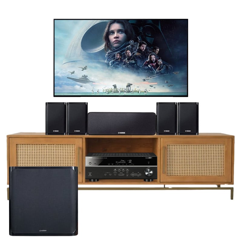 Yamaha YHT-1840 được thiết kế theo đúng triết lý “mua một lần dùng đủ”, bao gồm ampli xem phim 5.1 kênh (AV Receiver) và bộ loa 5.1 đồng bộ: loa front trái/phải, loa center thoại, loa surround trái/phải và loa subwoofer đánh trầm, tạo nên hệ thống âm thanh vòm hoàn chỉnh cho phim ảnh, game và nhạc